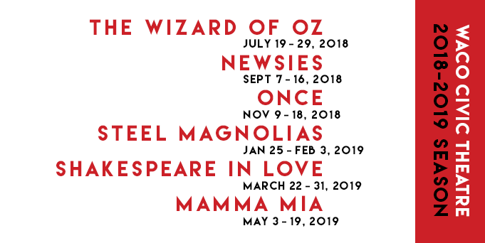 Tickets and additional information about auditions and how to get involved can be found at the Waco Civic Theatre’s website.