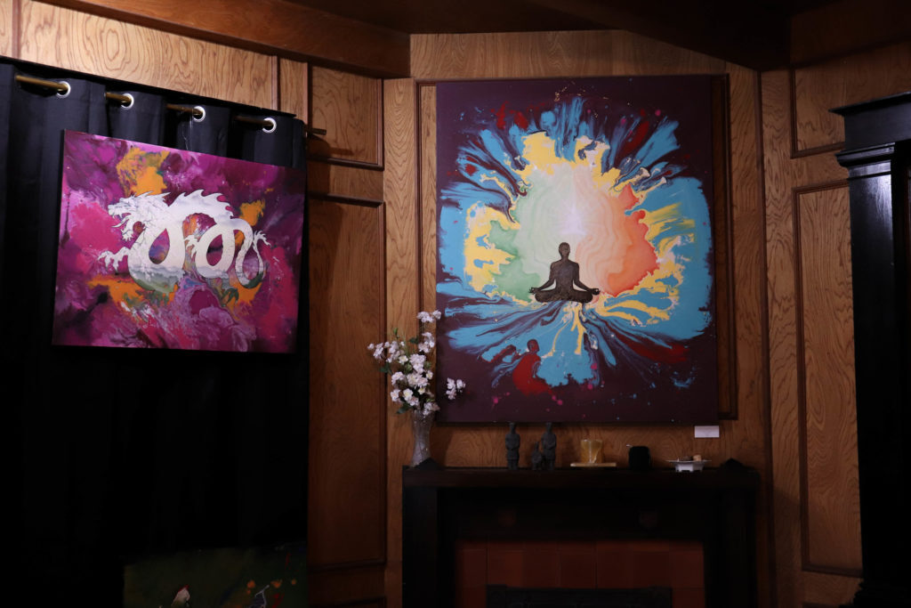 Out back is a spacious backyard, which is currently being converted into a serene garden. Kieran and Sistrunk are working towards transforming this grassy space into a tranquil retreat for yoga and meditation. One of the primary reasons that they opened the gallery was to provide a comfortable space for individuals to step away from their fast paced lifestyles and find tranquility through art.